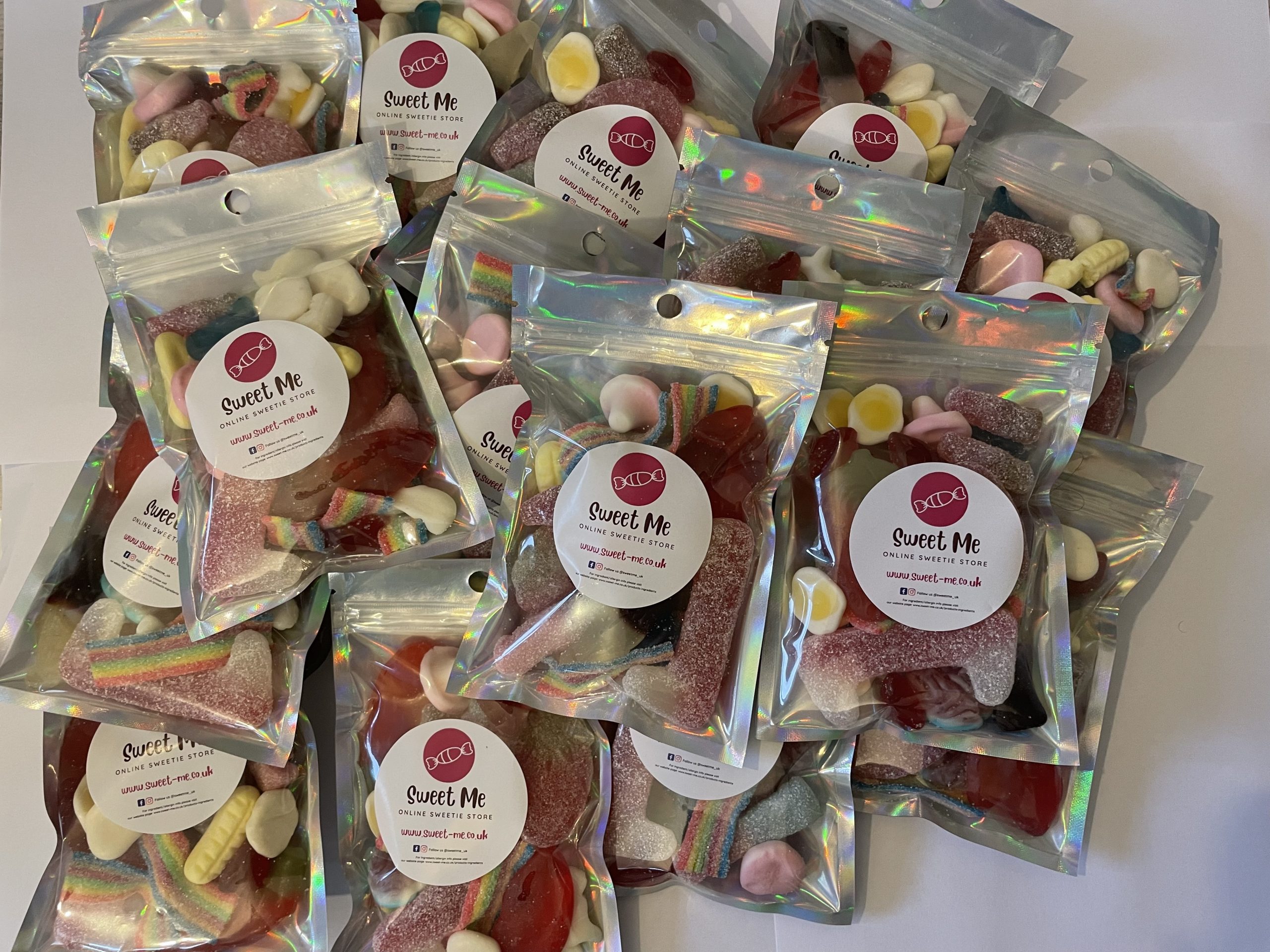 Perfect for parties, events, and celebrations! This bundle includes 15 ready-made mini pick ’n’ mix bags (100g each), filled with a surprise selection of sweets. Great for party bags, weddings, birthdays, and giveaways, each bag is freshly packed and ready to share.